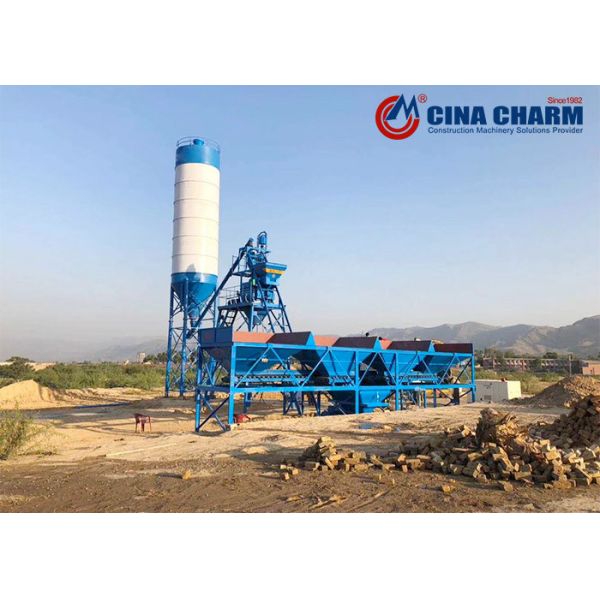 Hopper lift hzs 35 concrete batching plant Hopper material feeding Concrete batching plant with 50t cement silo Images |